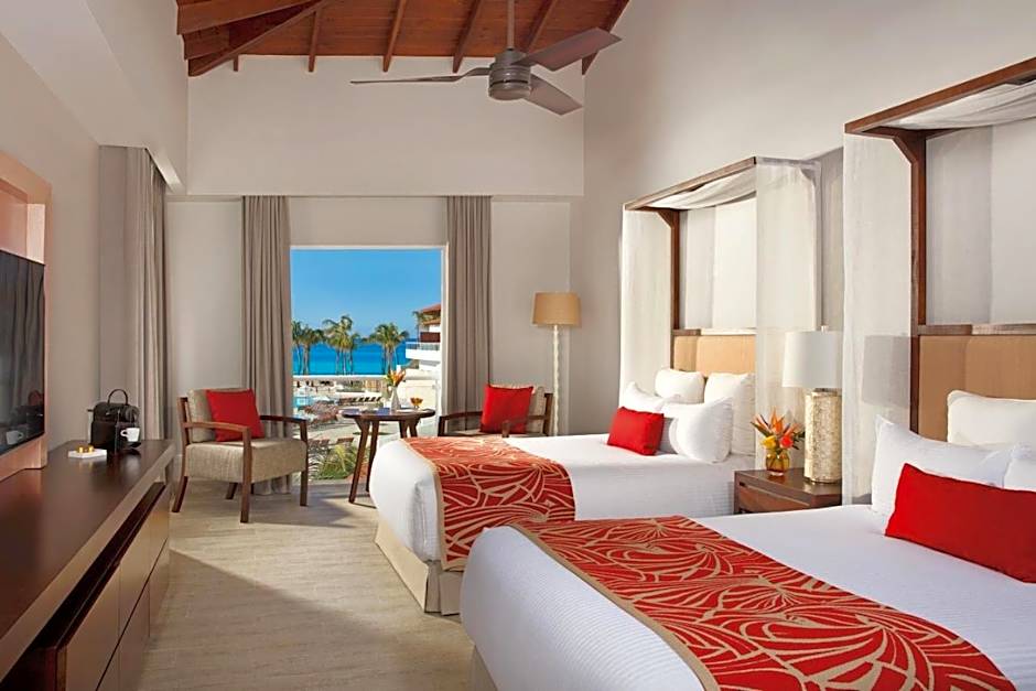 The Preferred Club Deluxe Swim-Up includes either a king or two double beds, direct access to the pool from the furnished terrace and lush tropical garden views. It includes special amenities such as personalized check-in and checkout with concierge service, bathrobes and slippers, upgraded mini-bar service, bath amenities and more.